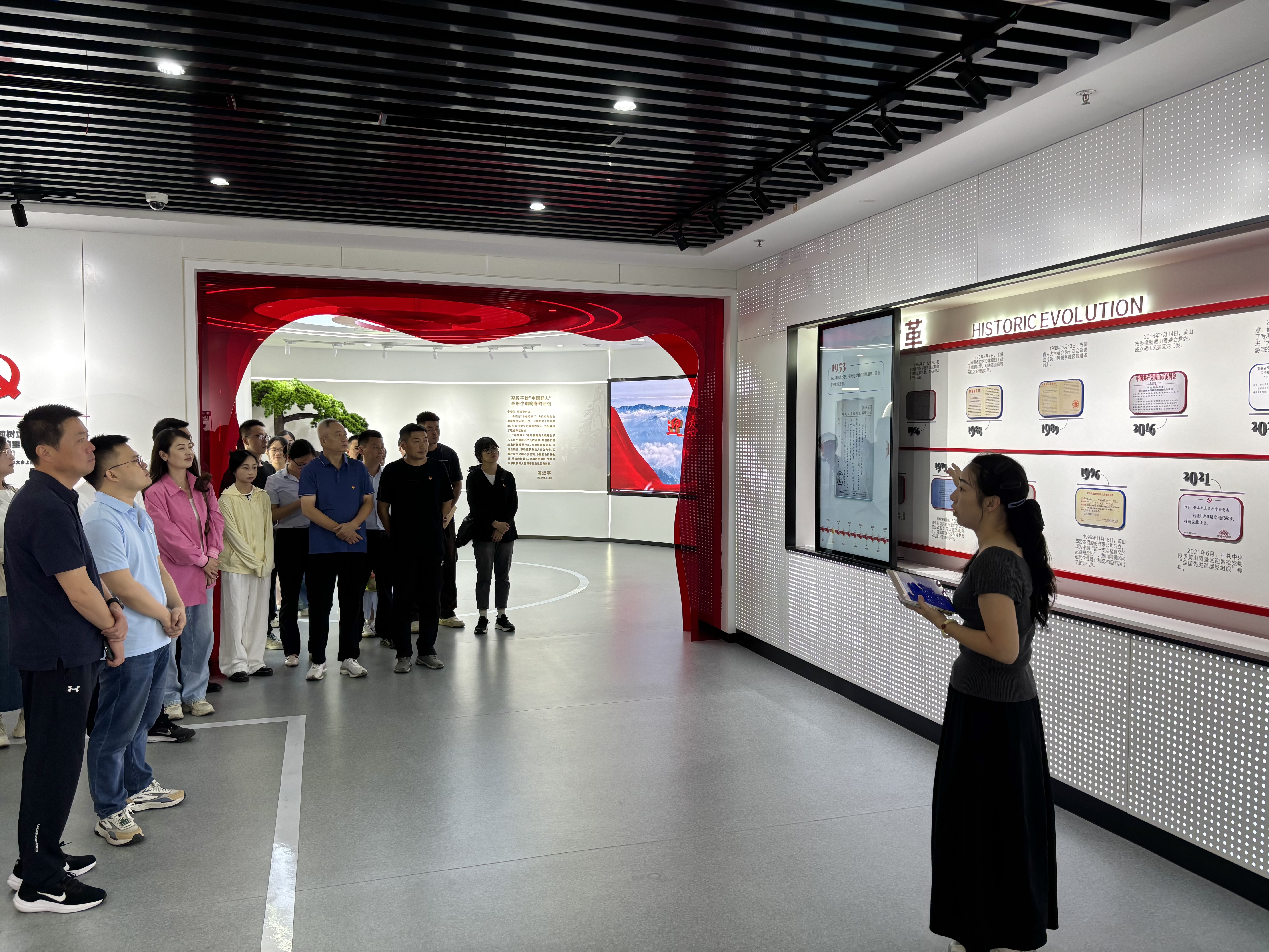首先,大家集中参观了黄山风景区迎客松党建馆、观瀑楼,重温了习近平总书记给“中国好人”李培生、胡晓春回信精神,全面了解了景区发展历程以及党建引领保护管理发展各项事业的工作成效,邓小平“黄山谈话”伟大历史时刻,感受一代又一代黄山人推动黄山旅游事业高质量发展的信心和决心,充分展现了新时代黄山旅游人的责任与担当。