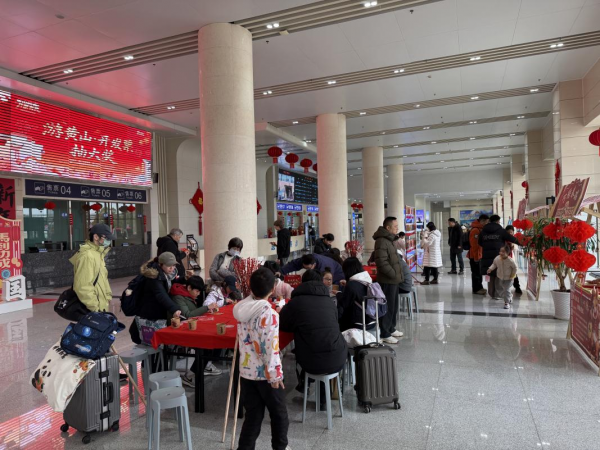 新春市集为旅客的候车时光注入满满暖意与趣味,黄山旅游客运中心精心布置浓厚年味场景,红灯笼、中国结点缀其间,氛围感拉满。现场开设趣味灯谜、甜羹相赠、巧结春瑞三大特色摊位,旅客们驻足竞猜灯谜、品尝热气腾腾的暖心甜羹,或是亲手编织中国结,将新春期许凝于指尖。原本单调的候车时光,因这些有温度的特色服务变得精彩纷呈,也让旅客在等候途中,深切感受到交通股份“微微服务”的贴心与用心,沉浸式体验新春年味。
