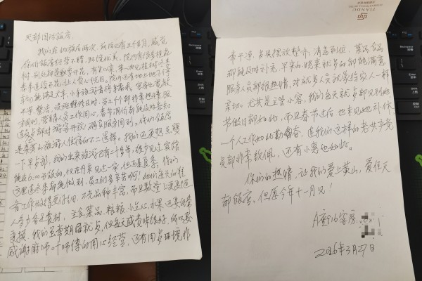 近日,天都国际酒店收到一封逾六百字的手写感谢信,这封信来自一对七十多岁老夫妻,在酒店旅居三个多月里,他们以真挚笔触记录旅居点滴,字里行间满是认可与温情,让全体员工备受鼓舞与感动。